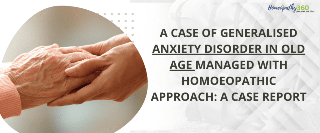 Introduction: Generalized Anxiety Disorder, commonly known as GAD, involves a pervasive feeling of anxiety and worry about different events or activities that occurs most days for a (minimum of six months). The worry can be difficult to control and is usually accompanied by physical symptoms such as muscle tension, irritability, difficulty in sleeping, and a feeling of restlessness. Such symptoms cause significant distress or impairment in everyday functioning in personal, social, or occupational domains. The anxiety is not produced by another medical condition or the consumption of drugs or substances. [1][2]In old age, GAD is less prevalent than young age, this anxiety is often overlooked in such patients as these people consider it as a part of their routine, especially in old age, thus anxiety is rarely addressed until severe. Allopathic medicines, when given in patients having GAD, may lead to dependence/ withdrawal symptoms. This article aims to shed light as to how homoeopathy may act as a safer option without any complexities or any adverse effects, addressing both physical and psychological aspect of the patient.