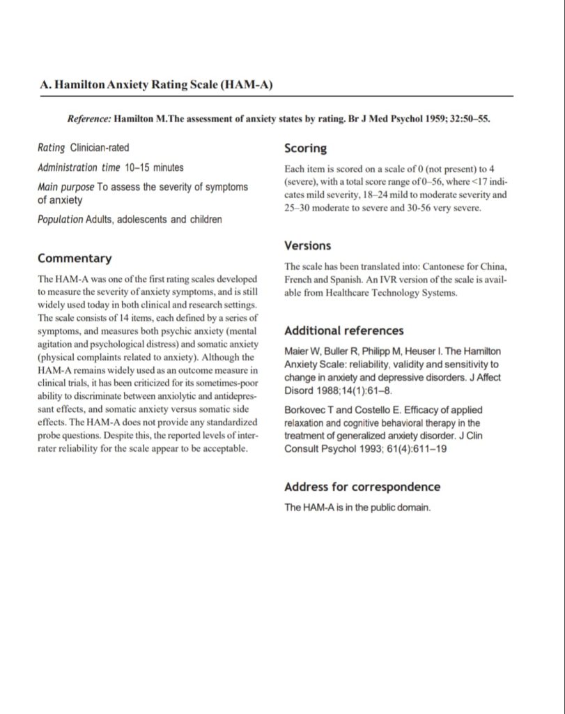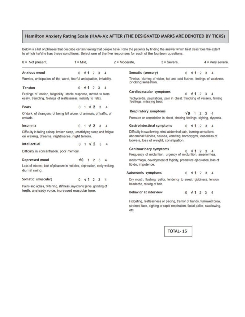 HAM-A SCORE BEFORE AND AFTER TREATMENT