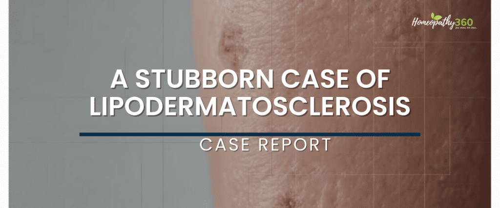 Lipodermatosclerosis refers to bound down, hard, sclerotic change in the skin of the lower legs due to chronic venous insufficiency leading to chronic inflammation and fibrosis. A 68-year-old Non-diabetic, Non- Hypertensive male patient reported to Outpatient department of JIMS Homeopathic medical college and Hospital with complaints ulceration and blackish discoloration on the right foot since 3 months which was a flareup episode where the patient suffers with similar episodes atleast twice a year for past 30yrs and takes allopathic medication which resolves and recurs again, lastly resorted to split-thickness skin grafting (STSG), for which patient turned up for Homoeopathic treatment. Now, The patient came with swelling over the right foot with discoloration and oozing of watery discharge along with itching and numbness sensation, dragging type of pain. Remedy was prescribed based of symptoms and general management was advised. The condition was improved in a consecutive follow-ups