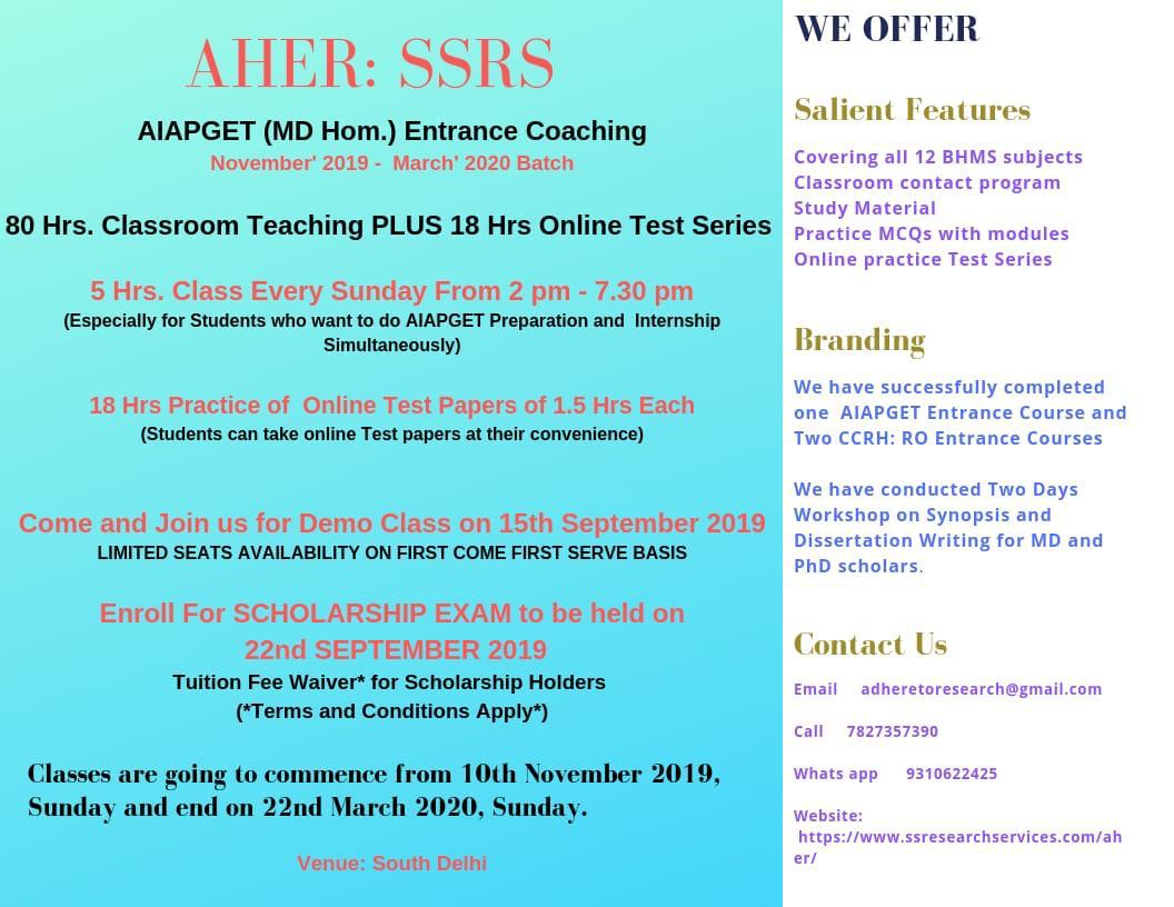 AIAPGET (MD Hom.) Entrance Coaching Is back, enrol now for November’2019-March’2020 batch.