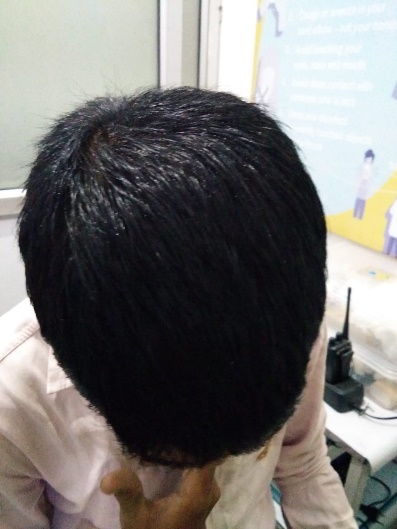| 10-05-2021 | Improvement in hairfall on head, still present over beard and moustache Itching persisted | Tuberculinum 200/ OD/ 3days (According to Kent’s 11th observation reappearance of older symptoms and the improvement is standstill then the repetition of the remedy should be prescribed)12 |