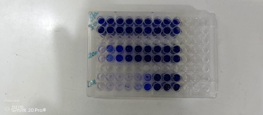 CRYSTAL VIOLET and the optical density (OD) was determined using ELISA Microplate Reader (LISA SCAN EM).