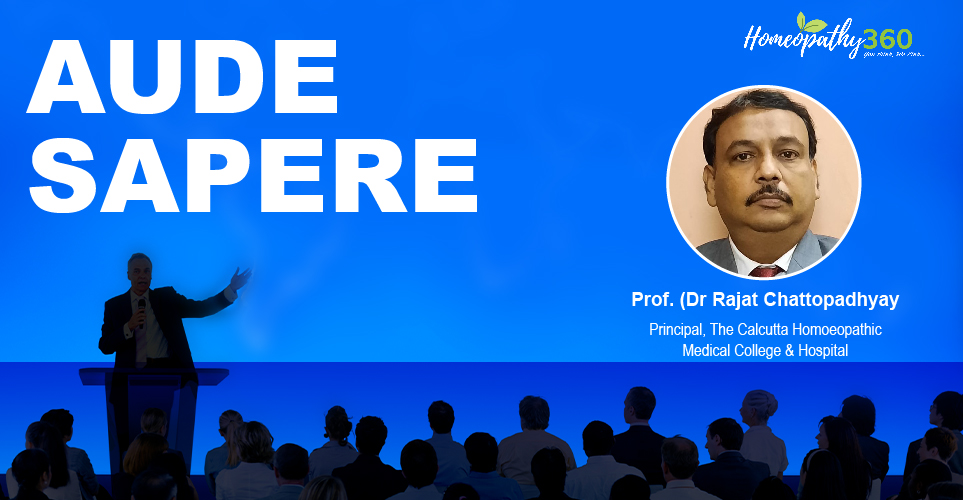 Since inception up till today, Homoeopathy has had to over and over again appeal for its own practitioners to come together and always, especially in a critical situation, this war cry has been resonated in the lakhs of Homeopathic physicians. Homeopaths this is our time to relive AUDE SAPERE—“Dare to be WISE”.