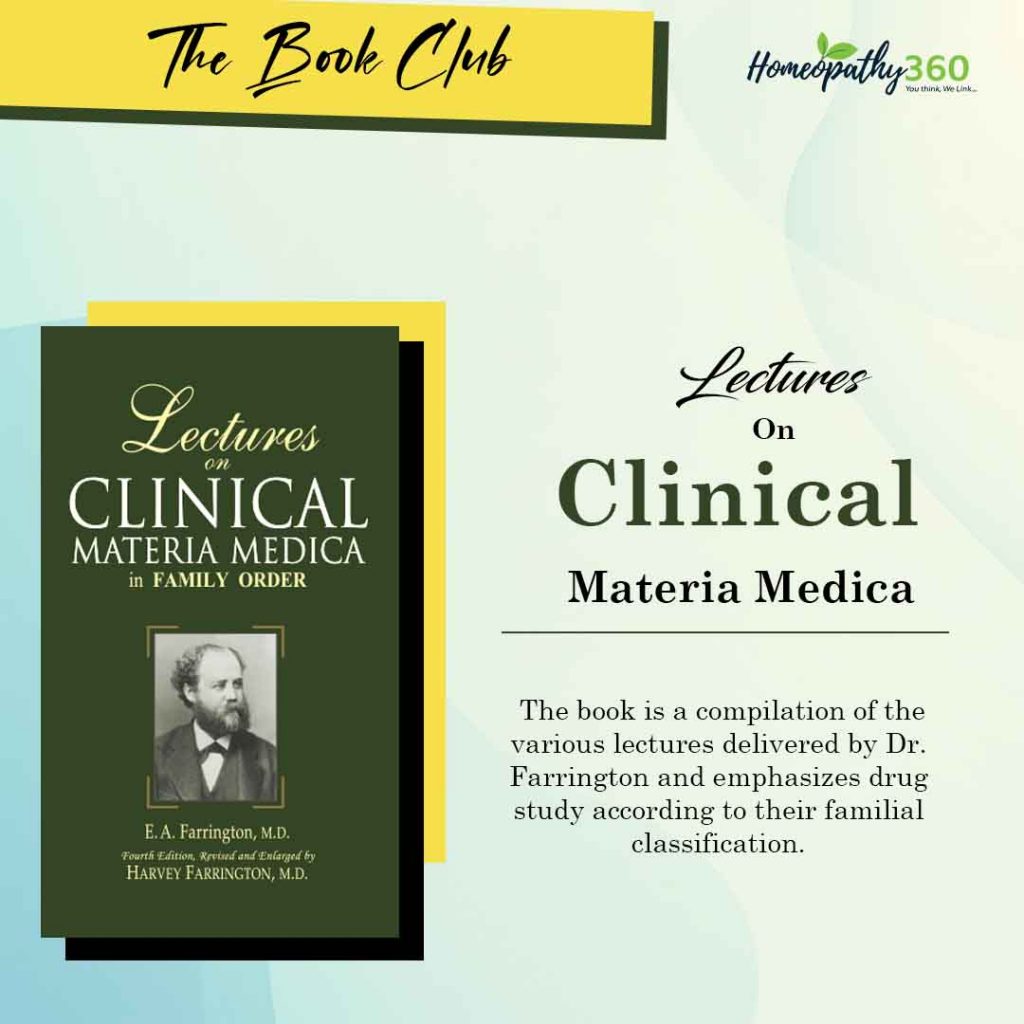 KEYWORDS- Clinical Materia Medica, Materia Medica Book, Best Book Of Materia Medica, Farrington’s Materia Medica, Group Study In Materia Medica, Homoeopathic Materia Medica Book