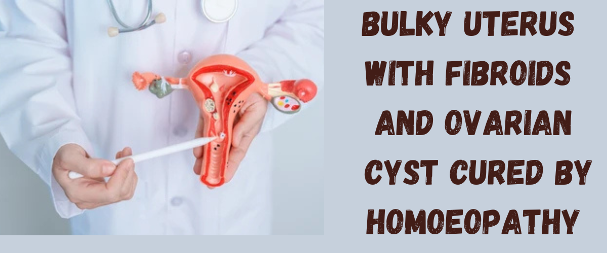 Liver normal in size ,contour and echo pattern . both ovaries are normal . no pelvic mass or free fluid . The ultra sonography taken at the end of 3 months uterine fibroids had disappeared and there was no cyst . Menses become normal & regular once in 30 days . Bulky uterus normal in size . the patient was completely cured & it is continued by her gynecologist her general health also improved. successfully homoeopathic treatment cured Fibroids and uterus problem .