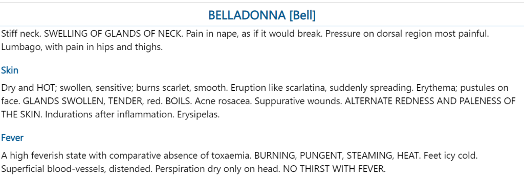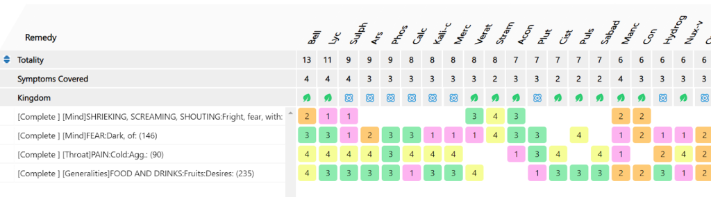 I understood this case- a child is fearful by nature- and something that scares him, aggravates him. He was scared, as he thought I am a doctor and might give him injection🡪his reaction🡪started crying loudly, turned red and had to be taken away from consulting chamber. So I understood this case from the Solaneacae family. My Differentials were either Stramonium and Belladona.