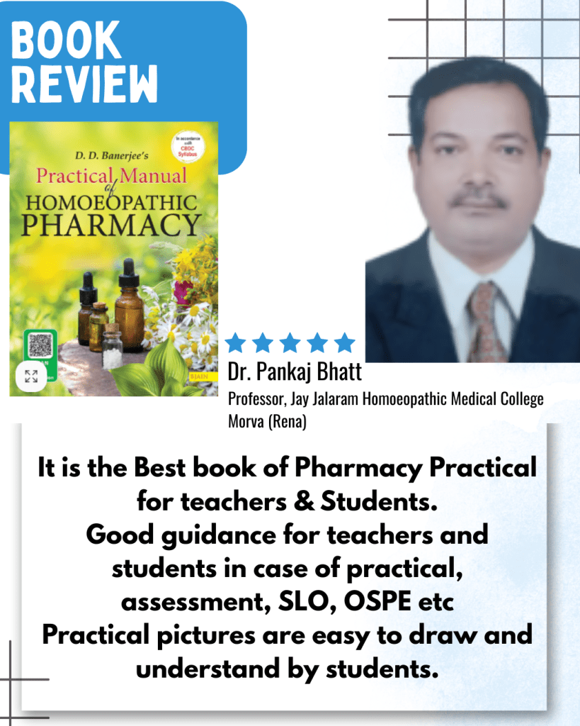 Is a Professor of Homoeopathic Pharmacy at Athurasramam NSS Homoeopathic Medical College, Kerala, is the Chief Editor of D.D. Banerjee’s Augmented Textbook of Homoeopathic Pharmacy (4th Edition, 2024).