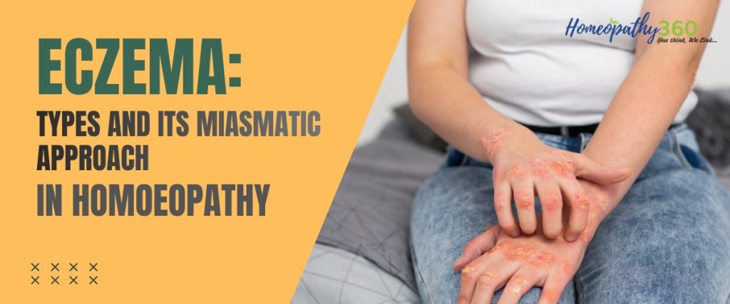 Eczema is a chronic constitutional disorder deeply rooted in miasmatic influences. Understanding the types of eczema along with their miasmatic background is essential for successful homoeopathic management. Miasmatic prescribing, combined with individualization, offers a holistic and curative approach in chronic eczematous conditions.