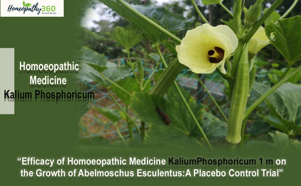 AIM:To assess the efficacy of Homoeopathic medicine Kalium phosphoricum 1M on the growth of Abelmoschus esculentus: A Placebo Controlled Trial.