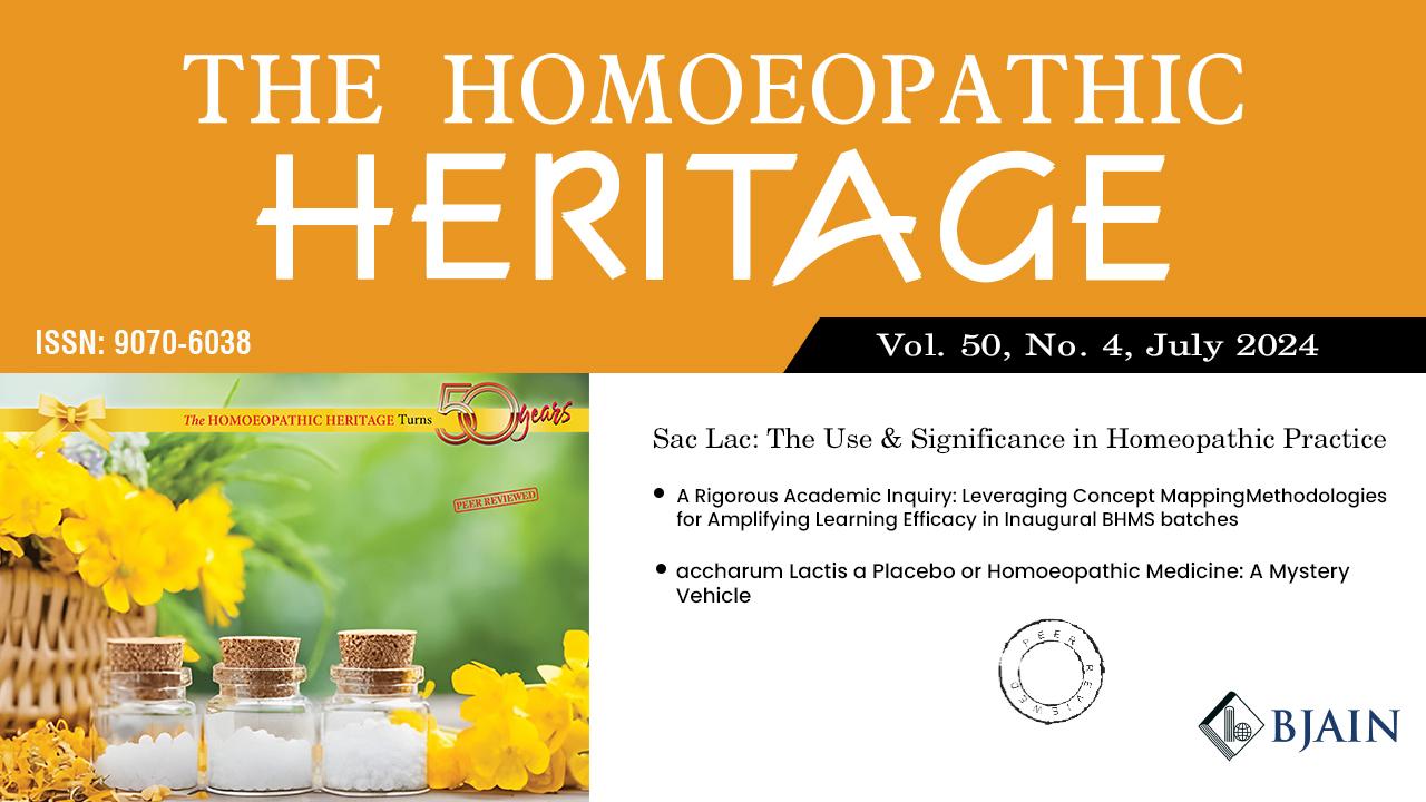 This issue of The Homoeopathic Heritage themed ‘Sac Lac: The Use and Significance in Homoeopathic Practice’ raises valid questions on the ethics behind the prescription that suggests administering non medicated sugar of milk or alcohol to a patient without informing him of non medicated nature of the so called medicine he is being prescribed. At the same time, this issue intends to find answers to these questions in the Homoeopathic literature and reflect the same in this issue in the form of case reports, opinion pieces and other articles by young budding homeopaths as well as professors of the science. Besides the monthly section -Stalwarts’ Expedition by Dr Subhas Singh, Director, National Institute of Homoeopathy, Kolkata, this issue features a wonderful column penned by Dr Subhash Chaudhary, Associate Professor, Practice of Medicine, National Institute of Homoeopathy, Delhi and several opinion pieces by students and professors of Homoeopathy. This issue also presents book reviews of two noteworthy books Boericke’s Materia Medica and Gentle Medicine authored by Dr Dr. Joachim-F. Grätz, Oberhausen i. Obb., Germany.