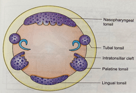 Hypertrophy or enlargement of the nasopharyngeal tonsil or adenoids may obstruct the posterior nasal aperture and may interfere with nasal respiration and speech leading to mouth breathing. These tonsils usually regress by puberty.