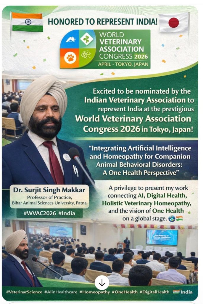 Dr. Surjit Singh Makkar has been formally invited to participate in the 41st World Veterinary Association Congress (WVAC 2026), a prestigious global gathering of veterinary professionals.