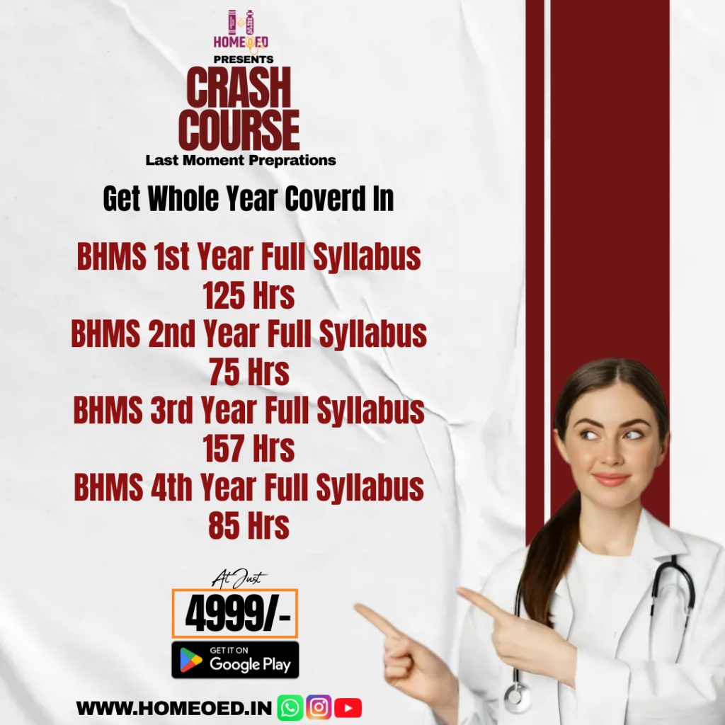 HomeoEd Presents the unbelievable crash course for 1st to 4th Year BHMS Students where you’ll get your whole year syllabus completed in just few Hours by the HomeoEd’s legendry highly qualified faculties , So No need to worry let your last moment preparation be the best to score.