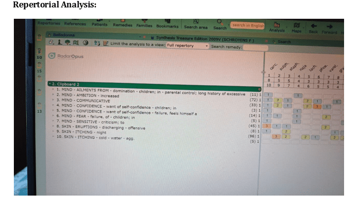 As this case contain more mental symptoms so, I choose Kent repertory .As the Dr.kent given more importance to mental general, physical general and less important to particular.