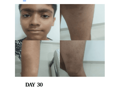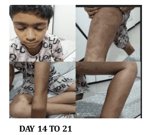 From 14 -21 days Absent from the face ,reduced from forearm and same lesion over the thighCARCINOSIN 1MSL 30