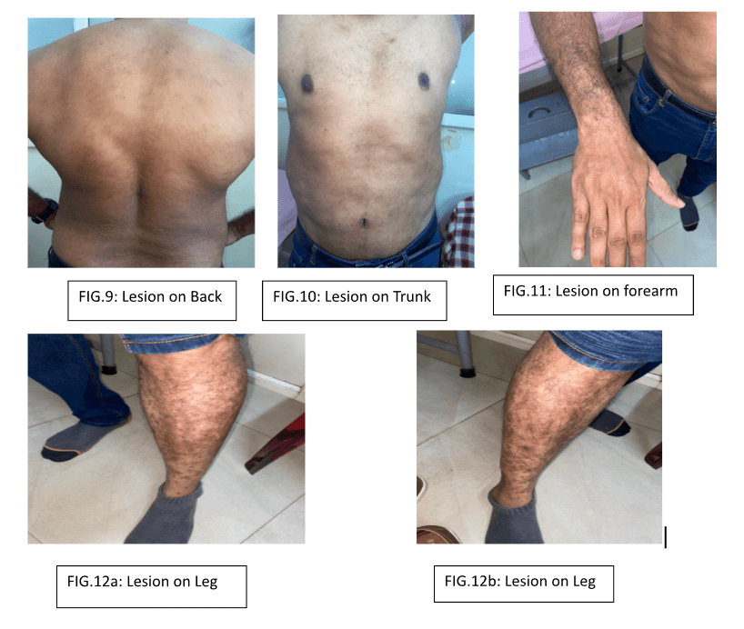 - Lesions predominantly on trunk and proximal limbs.