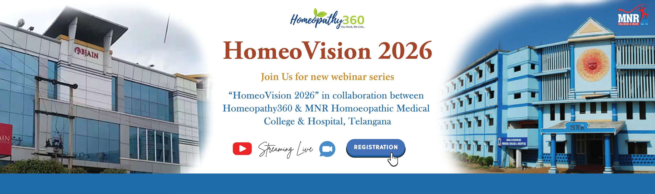 HomeoVision 2026 is a specially curated academic webinar series presented by Homeopathy360 in collaboration with MNR Homoeopathic Medical College & Hospital, Telangana.