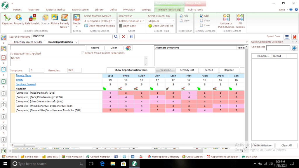 10/05/2023 Spigelia 30 3 doses was selected to give her for 3 days and then followed by SL for 15 days.
