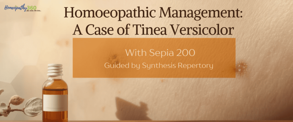 Tinea versicolor (Pityriasis versicolor) is a common superficial fungal infection caused by Malassezia species, characterized by hypo- or hyper-pigmented patch mostly affecting the trunk. Although many antifungal agents are used nowadays, recurrence is common. As Homoeopathy is based on individualization ,it offers effective and sustained relief. This article presents a detailed homoeopathic case of tinea versicolor treated with SEPIA 200, selected from totality of symptoms and guided by Synthesis repertory. The case highlights repertorial analysis, remedy selection, follow-up, and outcome, emphasizing the role of constitutional treatment in chronic fungal disorders.