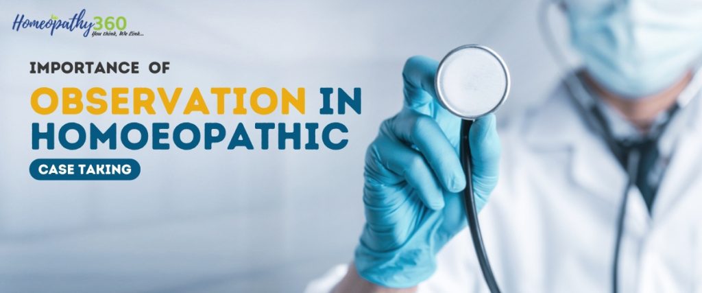 Observation plays a pivotal role in homoeopathic case taking, supplementing the verbal narration of symptoms with the physician’s own perceptions. Patients may consciously or unconsciously conceal, exaggerate, or be unaware of their symptoms. In such cases, the homoeopath’s keen power of observation becomes decisive in eliciting peculiar, individualizing features. This article highlights the historical roots of observation in Hahnemann’s Organon of Medicine and its practical applications in clinical practice. It further explores the techniques, areas and implications of observation in remedy selection. Observation transforms case taking into a holistic process by enabling the physician to perceive the patient’s “image of disease” in entirety.