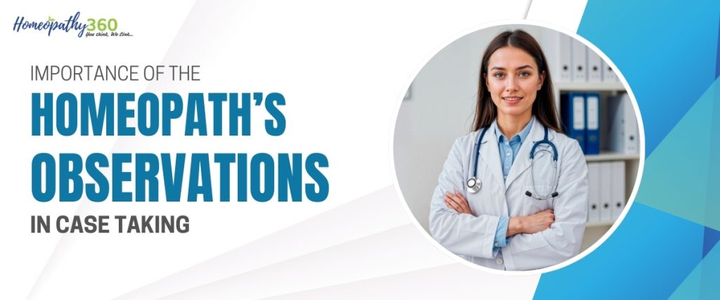 The concept of Case taking observation is deep as ocean & there are many ways of observation taught by Dr. Samual Hahnemann, the founder of homeopathy. In the homeopathic book organon of medicine, especially in Aphorism 6 & 83, Hahnemann described that the totality of symptoms helps to find out the exact remedy selection & that careful observation is essential to understand the complete picture of disease condition of the patient.