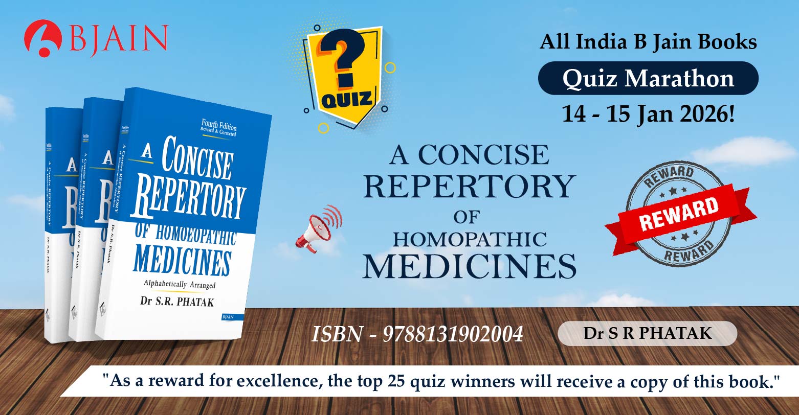 B Jain Books proudly presents the January Edition of the All India Quiz Marathon — a nationwide, time-bound online quiz competition designed especially for BHMS students.