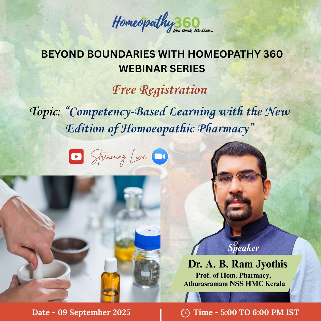 Join us for an enriching live webinar with Dr. A.B. Ram Jyothis on “Competency-Based Learning with the New Edition of Homoeopathic Pharmacy”