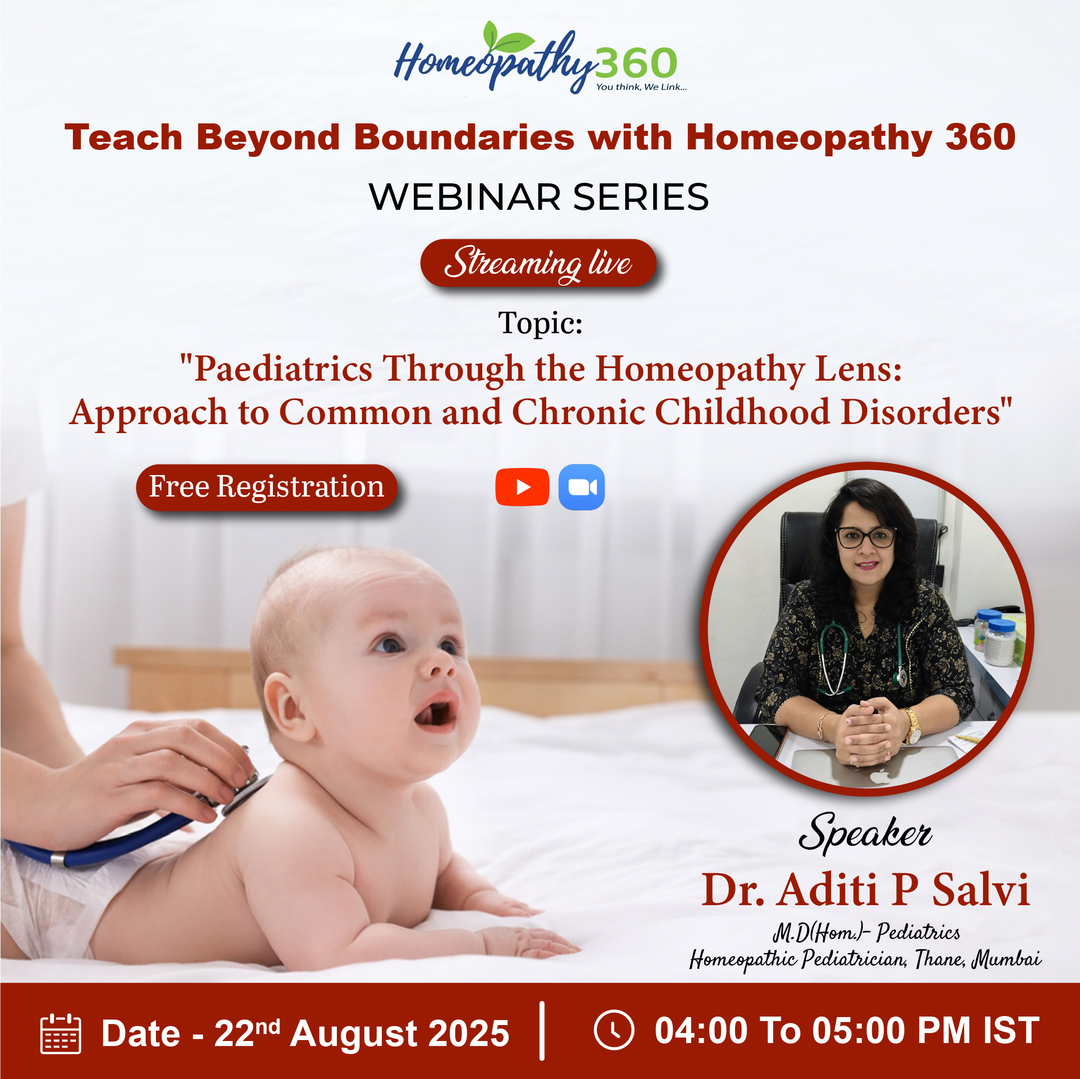 Join us for an enriching live webinar with Dr. Aditi Salvi on “Paediatrics Through the Homeopathy Lens: Approach to Common and Chronic Childhood Disorders”