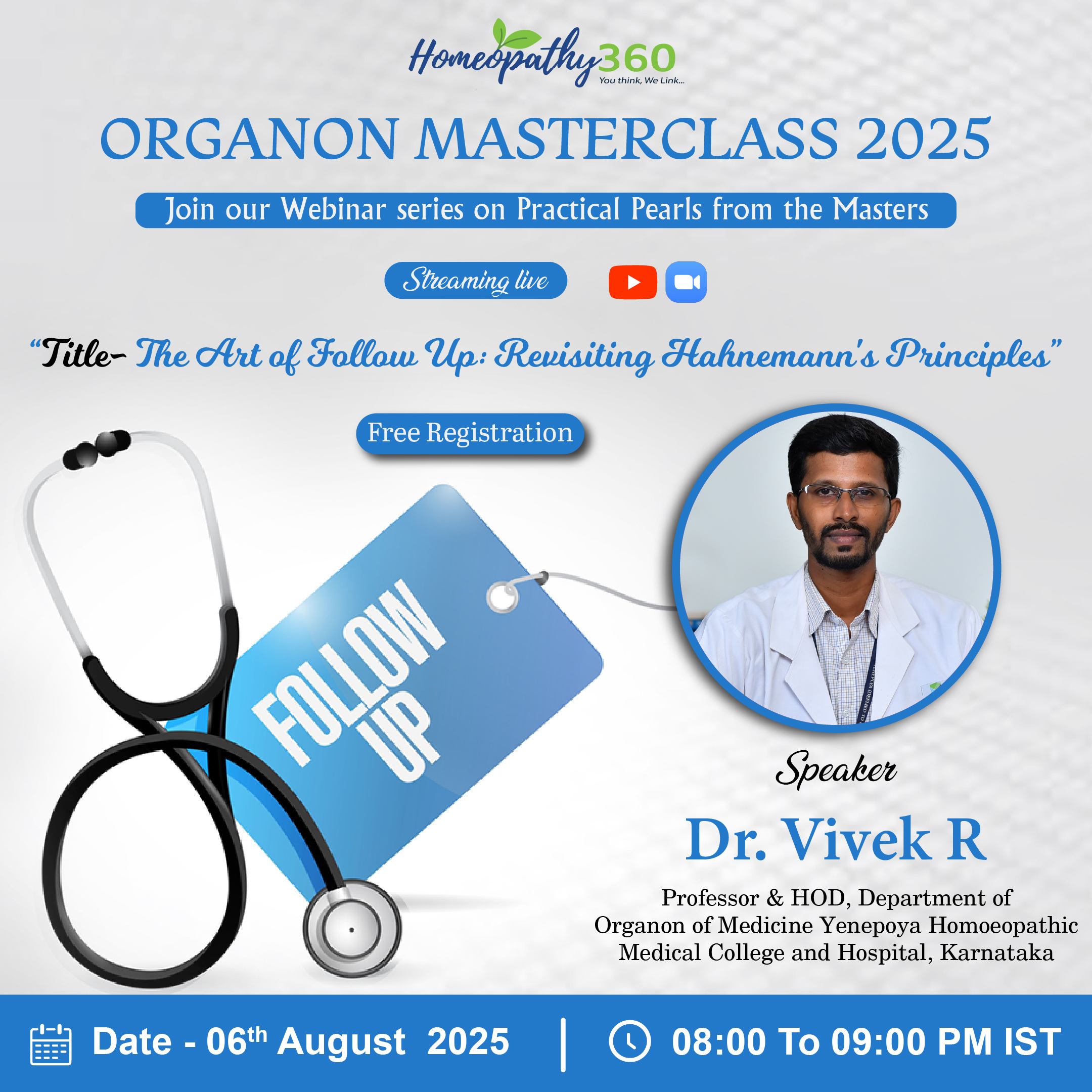 Join us for an enriching live webinar with Dr Vivek R on “The Art of Follow Up: Revisiting Hahnemann’s Principles”