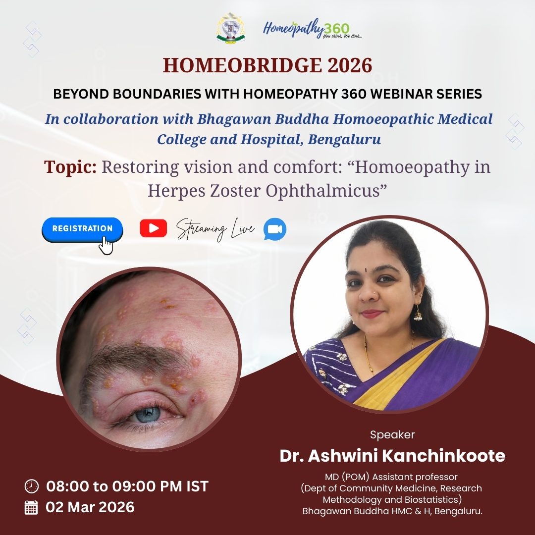 Join us for the upcoming webinar on “Restoring vision and comfort” in the ‘HomeoBridge 2026’ series, presented by Homeopathy360 in collaboration with Bhagawan Buddha Homoeopathic Medical College and Hospital, Bangalore.