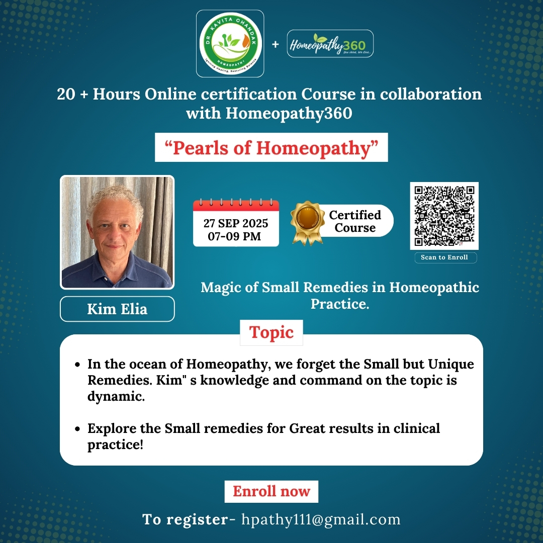 Course title: Magic of Small Remedies in Homeopathy for Fast Clinical Results