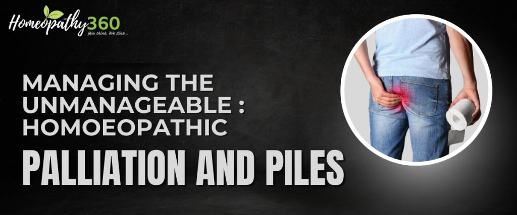 This case shows the palliative role of homoeopathy in advanced haemorrhoids where surgery is often unavoidable. Remedies like Aloes, Ratanhia, Causticum, and Kali Carb helped alleviate distressing local and mental symptoms.