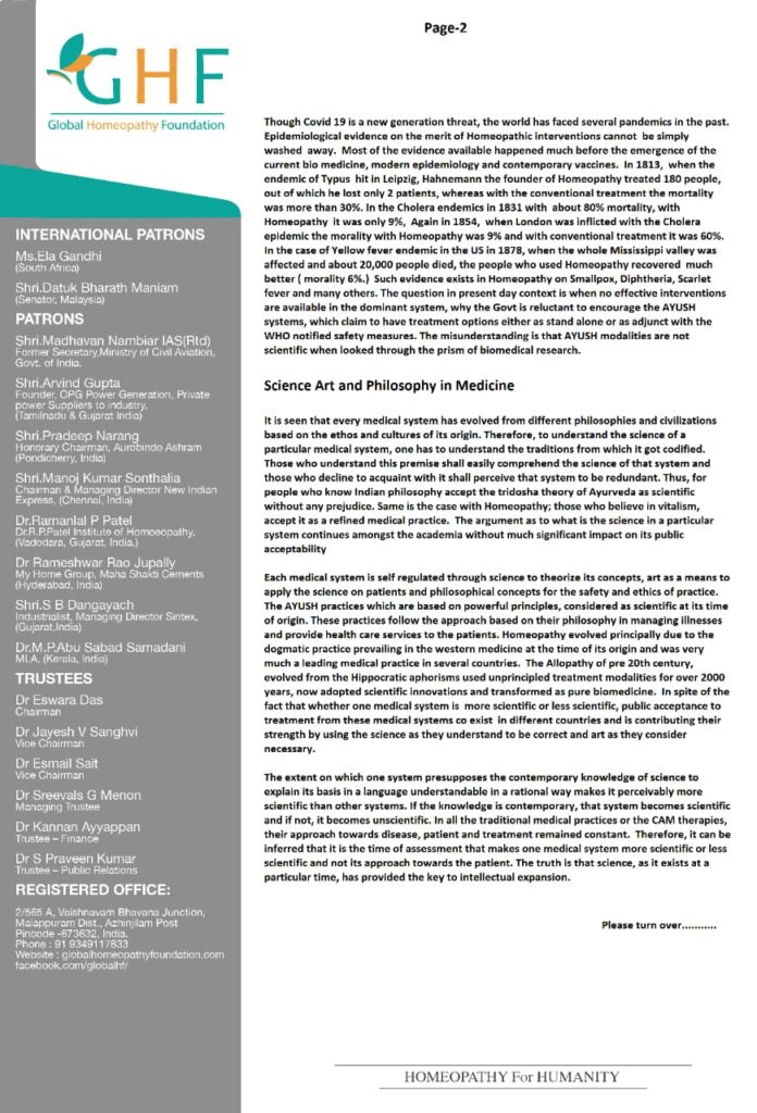 Though Covid 19 is a new generation threat, the world has faced several pandemics in the past. Epidemiological evidence on the merit of Homeopathic interventions cannot be simply washed away. Most of the evidence available happened much before the emergence of the current bio medicine, modern epidemiology and contemporary vaccines. In 1813, when the endemic of Typus hit in Leipzig, Hahnemann the founder of Homeopathy treated 180 people, out of which he lost only 2 patients, whereas with the conventional treatment the mortality was more than 30%. In the Cholera endemics in 1831 with about 80% mortality, with Homeopathy it was only 9%, Again in 1854, when London was inflicted with the Cholera epidemic the morality with Homeopathy was 9% and with conventional treatment it was 60%. In the case of Yellow fever endemic in the US in 1878, when the whole Mississippi valley was affected and about 20,000 people died, the people who used Homeopathy recovered much better ( morality 6%.) Such evidence exists in Homeopathy on Smallpox, Diphtheria, Scarlet fever and many others. The question in present day context is when no effective interventions are available in the dominant system, why the Govt is reluctant to encourage the AYUSH systems, which claim to have treatment options either as stand alone or as adjunct with the WHO notified safety measures. The misunderstanding is that AYUSH modalities are not scientific when looked through the prism of biomedical research.