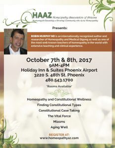 Homeopathy and Constitutional Wellness by Robin Murphy: October 7th & 8th, 2017