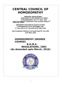 Homoeopathy Degree Course (BHMS) Regulation as notified on July 14, 2015 by The Central Council of Homoeopathy