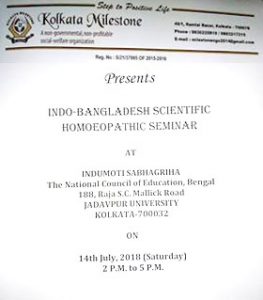 INDO-BANGLADESH SCIENTIFIC HOMOEOPATHIC SEMINAR At  Indumoti Sabhagriha Jadavpur University Kolkata – 700032   Date: 14th July ‘2018 (Saturday)   Time: 2 P.M To 5 P.M...