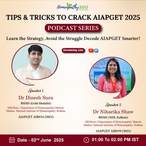 “BEYOND BOUNDARIES WITH HOMEOPATHY 360″ Join us for A PODCAST SERIES for TIPS & TRICKS TO CRACK AIAPGET 2025 with Dr Dinesh Sura and Dr...