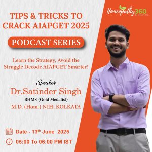 “BEYOND BOUNDARIES WITH HOMEOPATHY 360″ Join us for A PODCAST SERIES for TIPS & TRICKS TO CRACK AIAPGET 2025 with Dr Satinder Singh Title: TIPS...