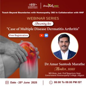 “Teach Beyond Boundaries with Homeopathy 360 In Collaboration with HHF” Join us for an enriching live webinar with Dr Amar Santosh Marathe on “Case of Multiple Disease Dermatitis Arthritis” Title:...