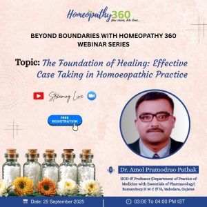 “BEYOND BOUNDARIES WITH HOMEOPATHY 360″ Join us for an enriching live webinar with Dr. Amol Pramodrao Pathak  on “The Foundation of Healing: Effective Case Taking...
