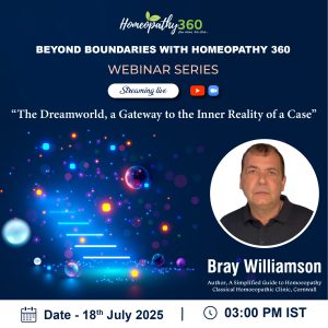 “BEYOND BOUNDARIES WITH HOMEOPATHY 360” Join us for an enriching live webinar with Bray Williamson on “The Dreamworld, a Gateway to the Inner Reality of a Case” Title: “The...