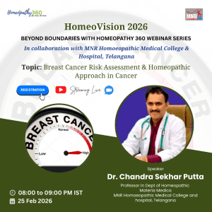 “HomeoVision 2026” Join us for the upcoming webinar on “Breast cancer risk assessment & Homeopathic approach in cancer” in the ‘HomeoVision 2026’ series, presented by...