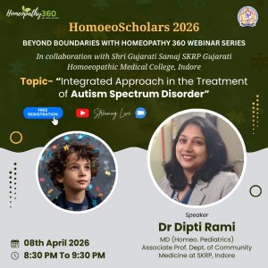BEYOND BOUNDARIES WITH HOMEOPATHY360 in collaboration with SKRP Gujarati Homoeopathic Medical College & Research Centre, Indore. Join us for an enriching live webinar with Dr...