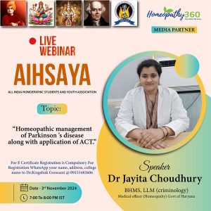 Join Upcoming Webinar “Homeopathic management of Parkinson ‘s disease along with application of ACT” with Dr Jayita Choudhury