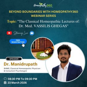 BEYOND BOUNDARIES WITH HOMEOPATHY360Join us for an enriching live webinar with Dr. Manidrupath on “The Classical Homeopathic Lectures of : Dr. Med. VASSILIS GHEGAS’’ Title:...