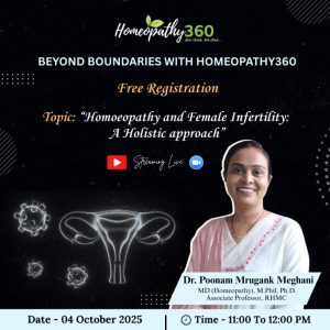 “BEYOND BOUNDARIES WITH HOMEOPATHY 360″ Join us for an enriching live webinar with Dr.Poonam Mrugank Meghani on “Homoeopathy and Female Infertility: A Holistic approach” Title:...