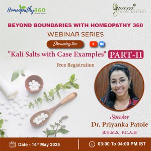 “BEYOND BOUNDARIES WITH HOMEOPATHY 360″ Join us for an enriching live webinar with Dr Priyanka Patole on “Kali Salts with Case Examples- Part 2” Title:...