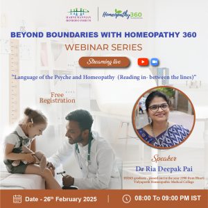 Join Upcoming webinar with Dr Ria Deepak Pai “BEYOND BOUNDARIES WITH HOMEOPATHY 360 Join us for an enriching live webinar with Dr Ria Deepak Pai...