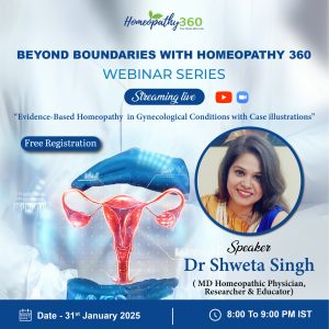 “BEYOND BOUNDARIES WITH HOMEOPATHY 360” Join us for an enriching live webinar with Dr Shweta Singh on: Evidence Based Homeopathy in Gynecological Conditions with Case...