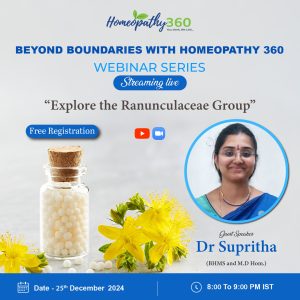 Join Upcoming webinar with Dr Supritha on Explore the Ranunculaceae Group “BEYOND BOUNDARIES WITH HOMEOPATHY 360 Join us for an enriching live webinar with Dr Supritha...